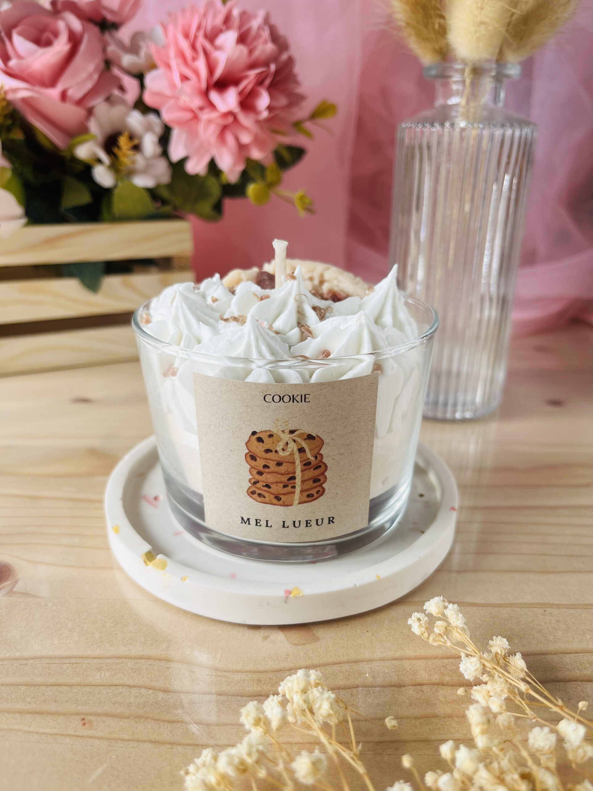 La bougie est très belle et sent très bon, seul petit bémol mon cookie est nature il n’a pas de pépites de chocolat 🙃